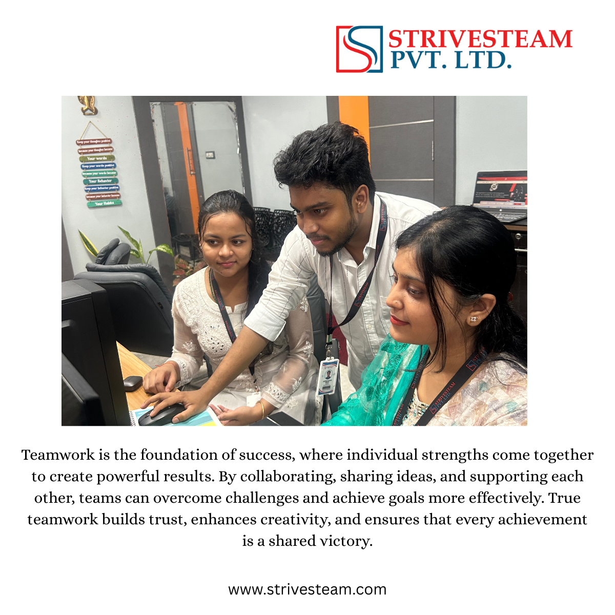 At STRIVESTEAM PRIVATE LIMITED, our team is a blend of passionate, skilled, and forward-thinking professionals. We work collaboratively to bring innovative ideas to life and deliver meaningful results...
